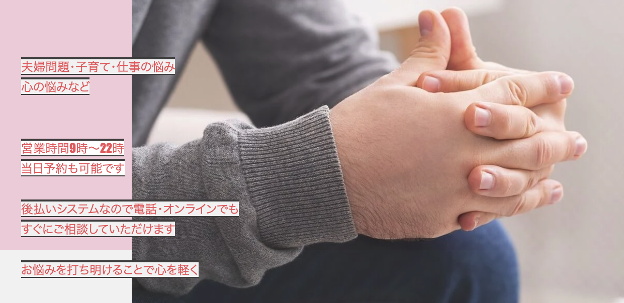 「身近に相談できる人がいない」という場合には、カウンセラーに相談してみてはいかがでしょうか。